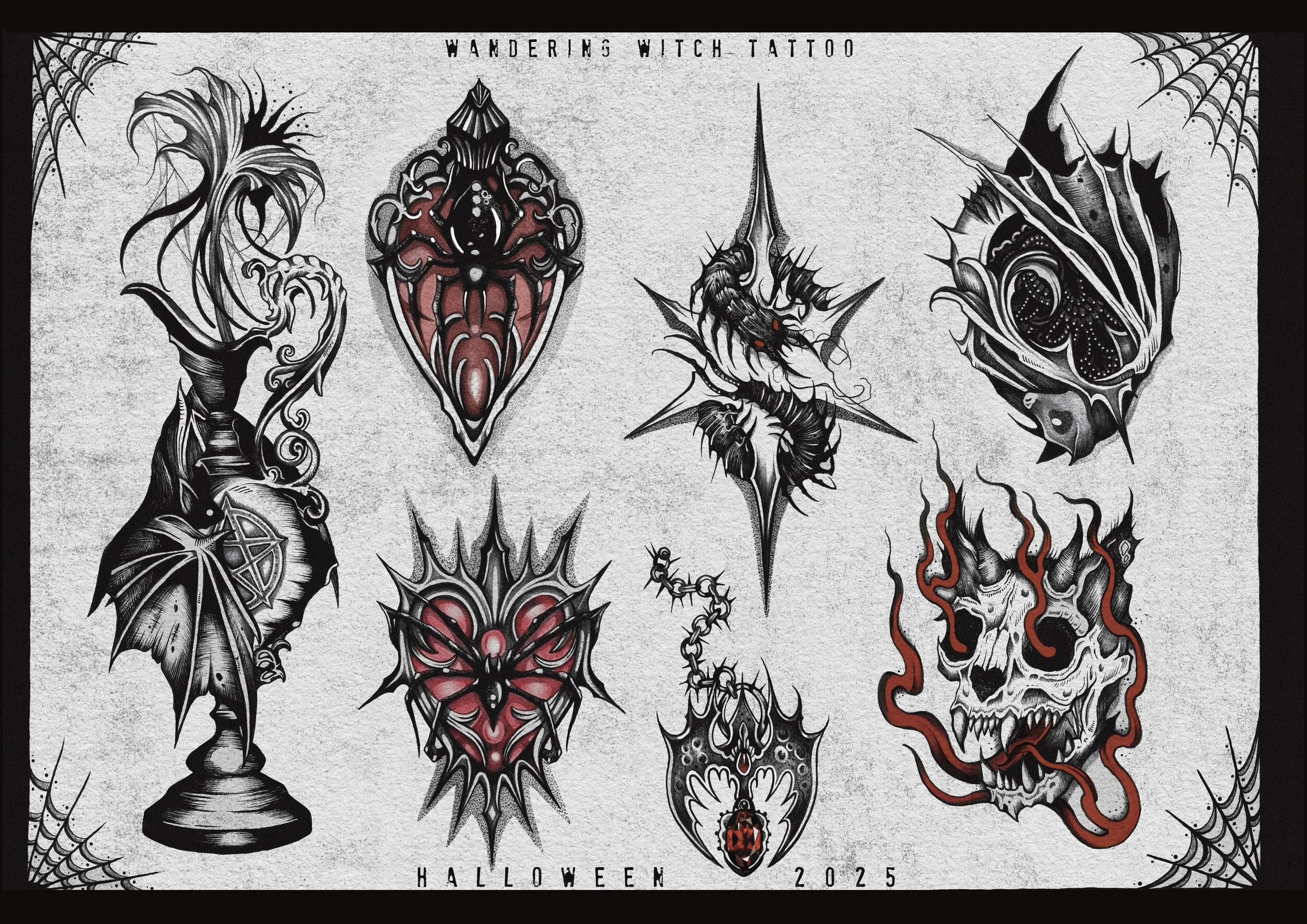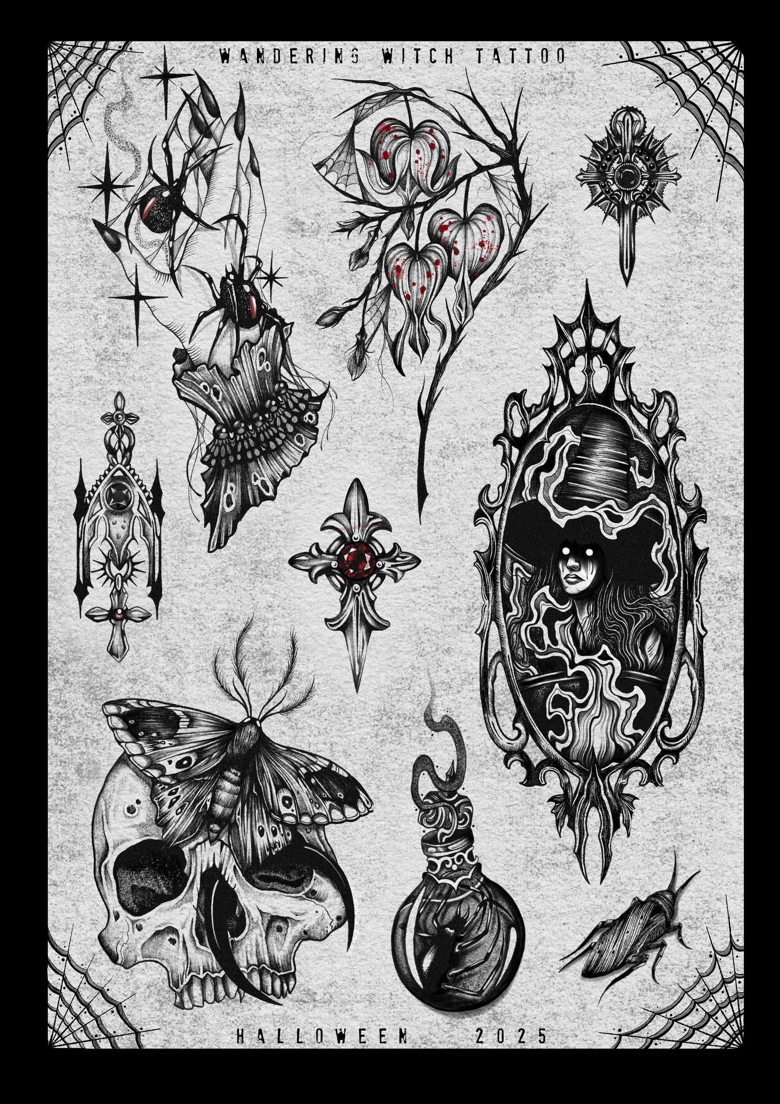 Shop Coven Skincare Healing Salve No. 2 A$20.00 Coven Skincare Elixir No. 1 from A$25.00 Halloween Flash Sheet 2 - A3 Print A$25.00 Halloween Flash Sheet - A3 Print A$25.00 Winged Window - Stained Glass Print A$15.00 Enchanted Rose - Stained Glass Print from A$15.00 Web Weaver - Stained Glass Print A$18.00 Halloween Reaper A4 Print A$15.00 Wandering Witch Tattoo - Cropped Logo Tank Sale Price: A$25.00 Original Price: A$50.00 Sale Wandering Witch Tattoo - Goat Tee Sale Price: A$25.00 Original Price: A$50.00 Sale Wandering Witch Tattoo - Sticker Packs A$10.00 Wandering Witch Tattoo Voucher A$50.00 Wandering Witch Tattoo - Totes Sale Price: A$10.00 Original Price: A$15.00 Sale Luna & Soul Oracle Card Set A$40.00